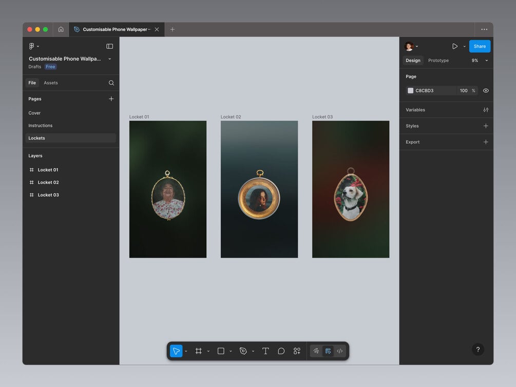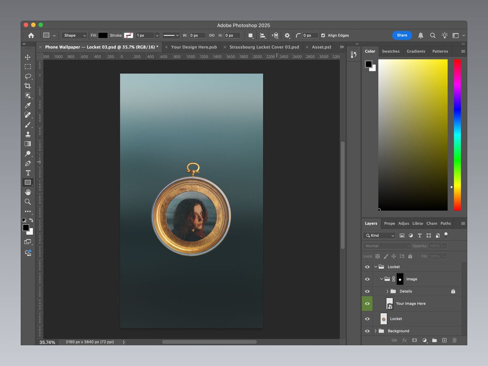 Available in both Photoshop and Figma formats, you can easily adjust the locket’s position and size, choose your own background colour or image, and enable a blur effect for a softer look.