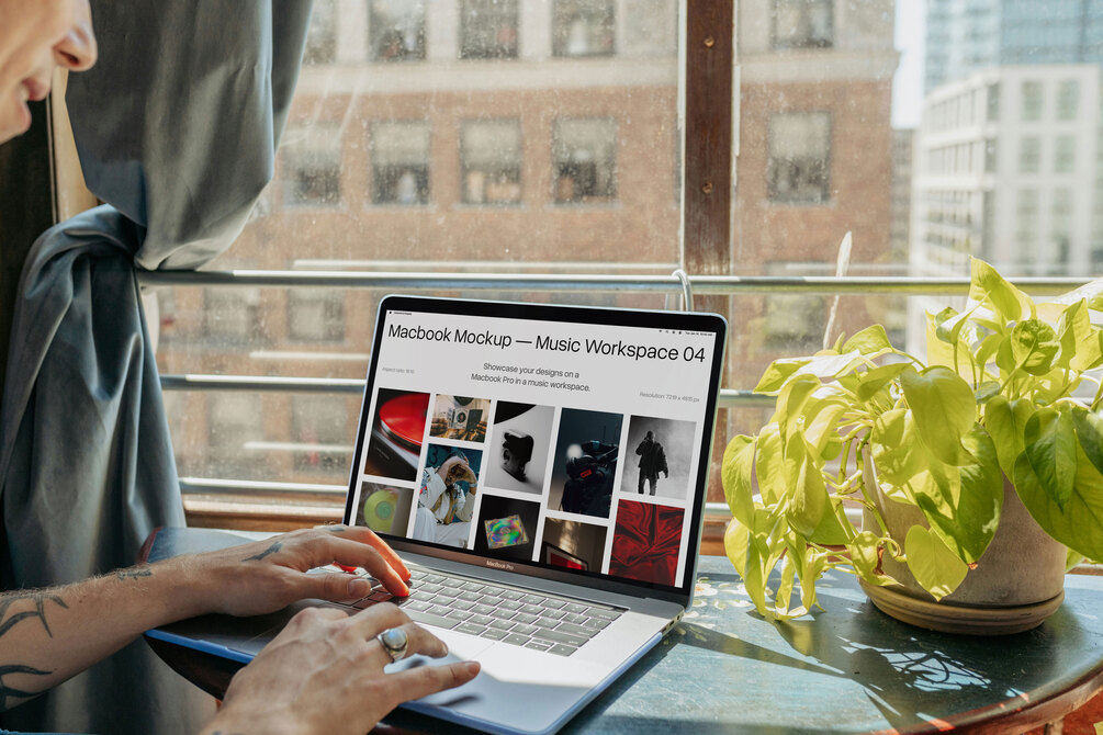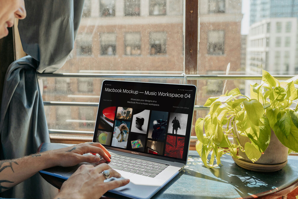 Showcase your designs in a music producers workspace with this Macbook Mockup.